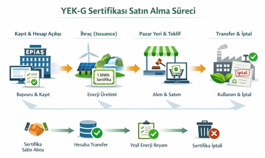YEK-G sertifikası, bir işletmenin şebekeden çektiği elektriğin ‘yenilenebilir’ karakterini ispatlamak için kullanılır. Tüketilen her 1 MWh elektrik için sistemden 1 adet YEK-G sertifikası satın alınıp ‘itfa’ edildiğinde, o enerjinin kaynağı fiziksel olarak takip edilemese bile, mülkiyet hakları üzerinden tüketimle ilişkilendirilmiş olur.